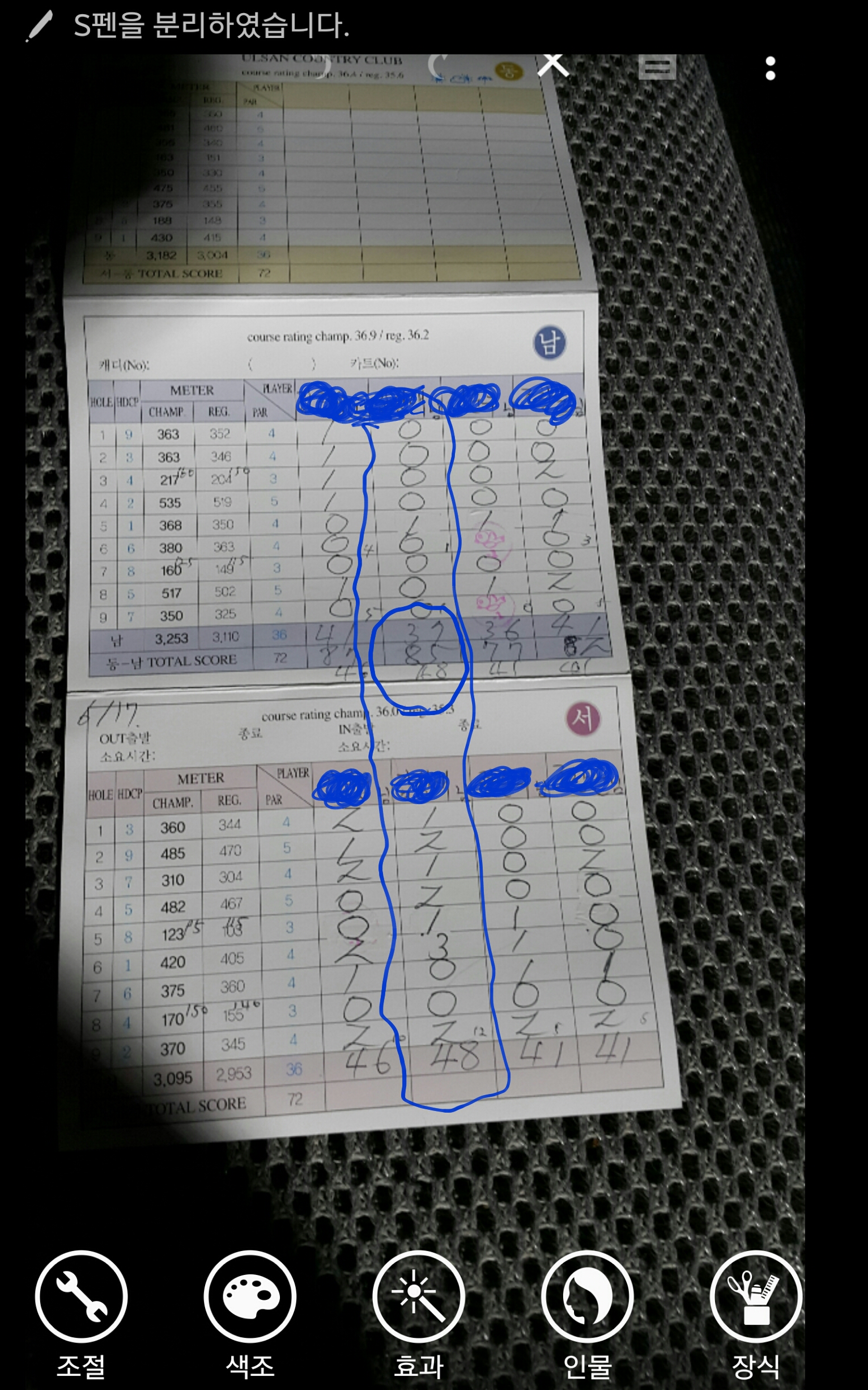 전후반 보통 4개 5개인데 어제는 유난히 심하였습니다 핸디는 10개입니다 ^^ |