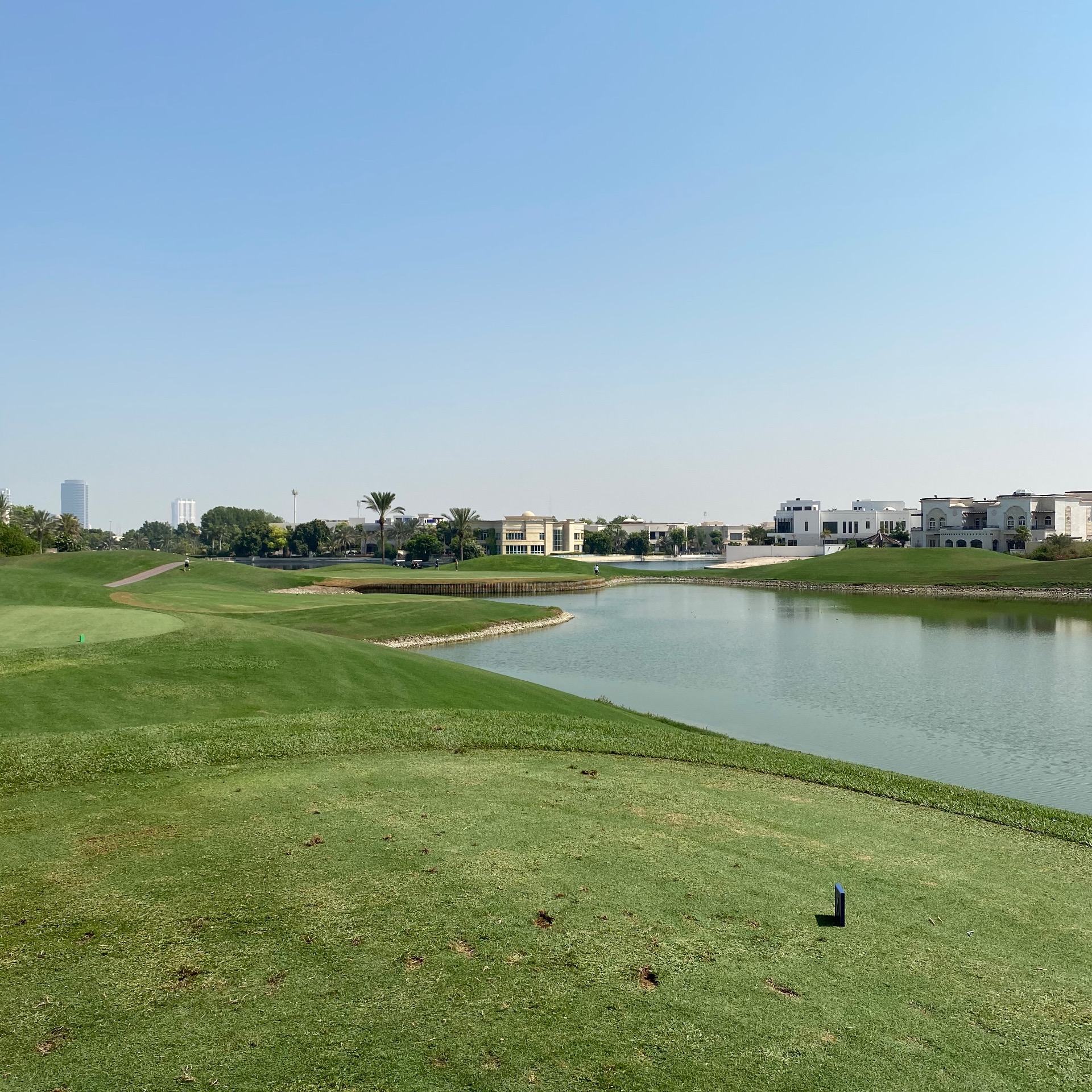 마지막 18번홀은 파5였고, 핸디캡 1번홀 이었는데 약간 높은 곳에서 아래를 향해 샷을 하고 저 멀리 높은 빌딩을 향해서 티샷을 하는곳이라 제대로 잘 나가면 아주 기분좋을 홀이었습니다.(마지막 사진)
