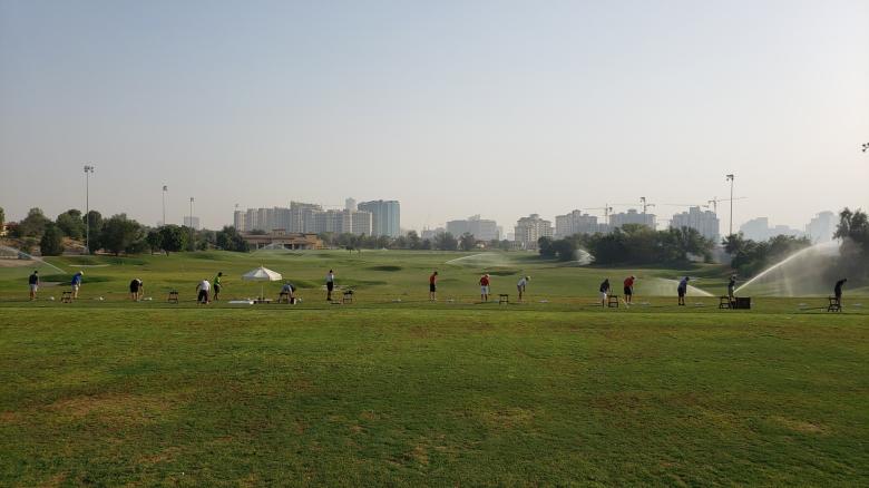 요즘이 10월부터 시작될 골프 핫시즌을 대비해서 그린 리노베이션과 페어웨이 관리, 그리고 날이 더워서 잔디가 죽는 곳이 생겨서 그런지 그린피는 주말임에도 250디르함, 7.5만원정도 였습니다. 시작시간은 오전 9시였고 저는 혼자 부킹이라 마찬가지로 혼자 부킹한 외국 형님과 조인플레이 했습니다.