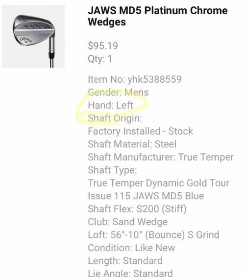 웻지를 들일려고 협력사를 들락 날락하던중에 원하는 각도는 있는데 이게 hand : left 라고 되어 있으니 헤깔리네요...