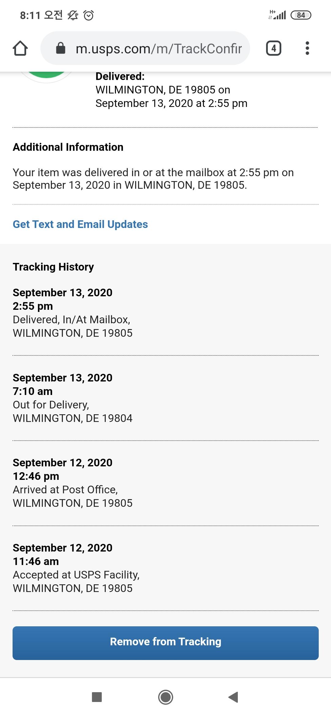 감사합니다 두번째 19805로 배송됐다고 나오는게 USPS트래킹 결과 입니다 ㅠ |
