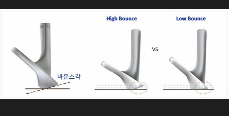 하이바운스는 하이바운스 처럼 리딩에지를 살짝 띄워치고 로우바운스는 가급적 바닥에 붙여서 로우바운스 처럼 친다.