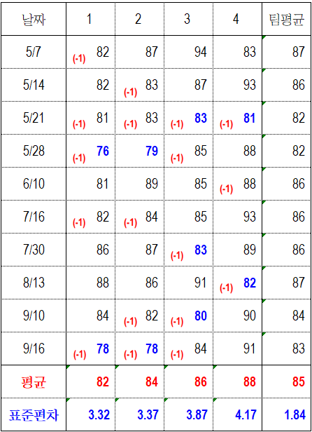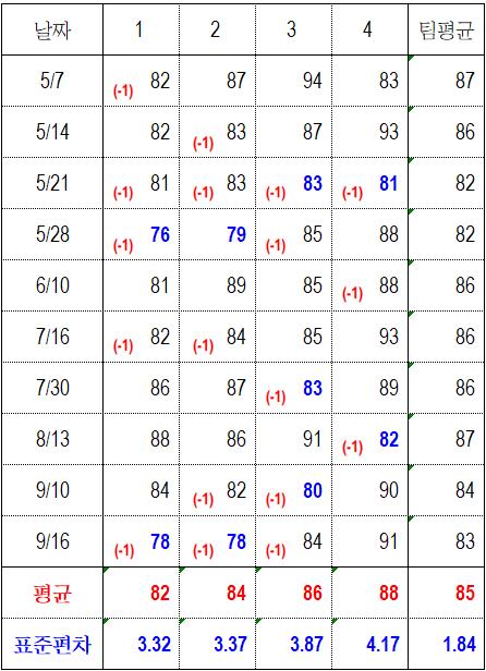 핸디의 순위가 편차의 순위와 일치하는 걸 보니 새삼 느끼는 거지만 평균타수도 중요하지만