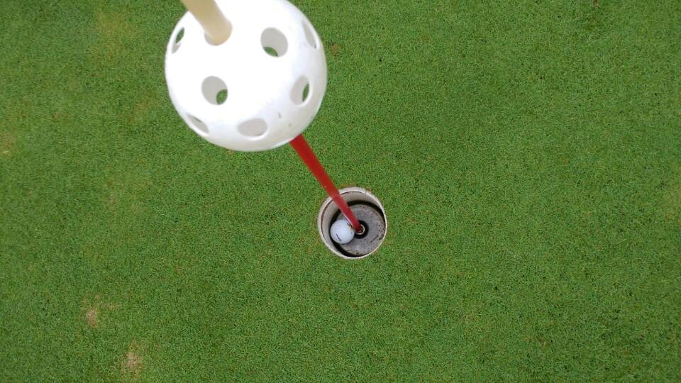 맞을 때 느낌 좋아서 핀에 많이 가깝게 붙겠다 싶었는데, 에이프런에 떨어진 공이 홀로 출발하네요. 깃대맞고 홀로 탁 들어가는것이 아니고, 퍼팅한것같이 데구르르 통 하고 떨어집니다.