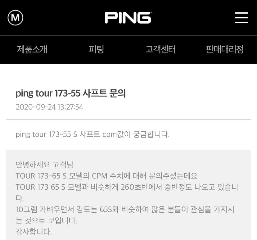Ping Tour 173-55 샤프트 CPM 관련 삼양답변 > 골프포럼
