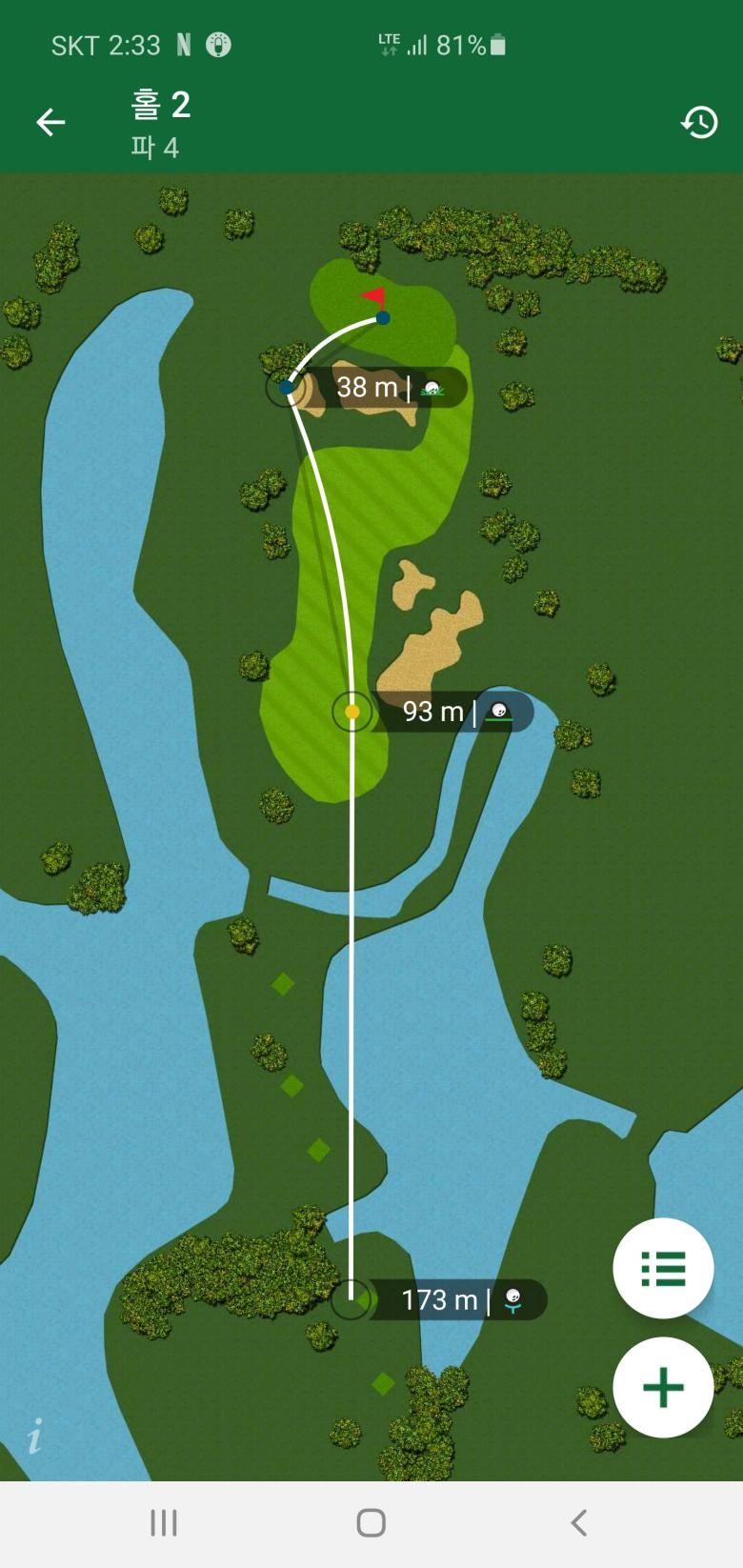 한가지 아쉬운 점은 그린 주위에서입니다. 핀 위치를 수동으로 Drag & Drop으로 조절해줘야 하기 때문에 좀 귀찮고 부정확할 수 있습니다. 그래서 그린 주위에서만큼은 레이저 측정기 사용을 추천드립니다. 물론 저는 레이저로 찍어 봐도 공이 그쪽으로 안갑니다...(--;)