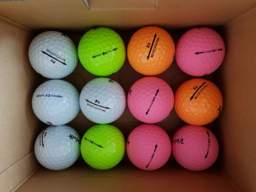 S4가 많이 들어 있네요. 골프존마켓에서 구입하면 S3, S4를 많이 넣어주는가 봅니다. 전 7월에 지xx에서 한더즌 구매해 봤는데 S4 2개, 절반은 XT Soft, 나머지 절반은 vivid soft 구성이었어요. XT soft는 전부 홀인원 인쇄볼이었구요. x-out이라 공정상 인쇄번짐은 이해하겠는데 홀인원인쇄볼은 받아보니 좀 그렇더라구요. XT soft는 타감 괜찮다고 느꼈는데 이곳저곳 숲에, 물에 많이 심었네요. vivid soft는 매트 재질에 볼라이너 그은 선이 잘 번집니다. 공도 좀 묵직하게 느껴지고 카트도로 맞으면 매트재질 잘 벗겨지고요. 분홍색 vivid soft는 낮에도 눈에 잘 띄지 않았어요.