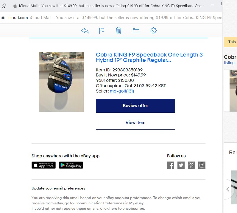 그 중 셀러 중 한명이 아래와 같이 제안 메일이 줬드라구여. 149.99 달러 Like New 중곤데,