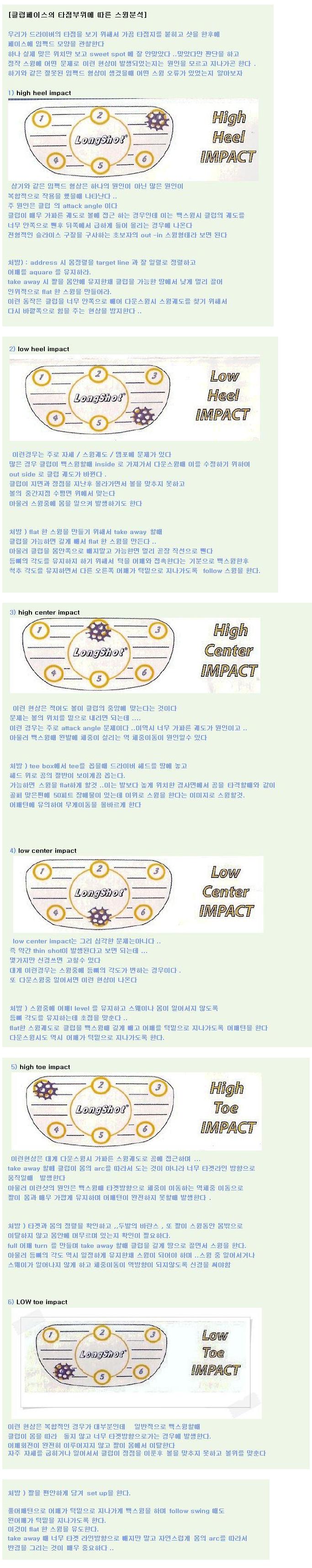 드라이버의 경우 바깥쪽에 맞아요 방향은 약간 훅성이구뇨 거리나 궤도의 경우 괜찬아보입니다