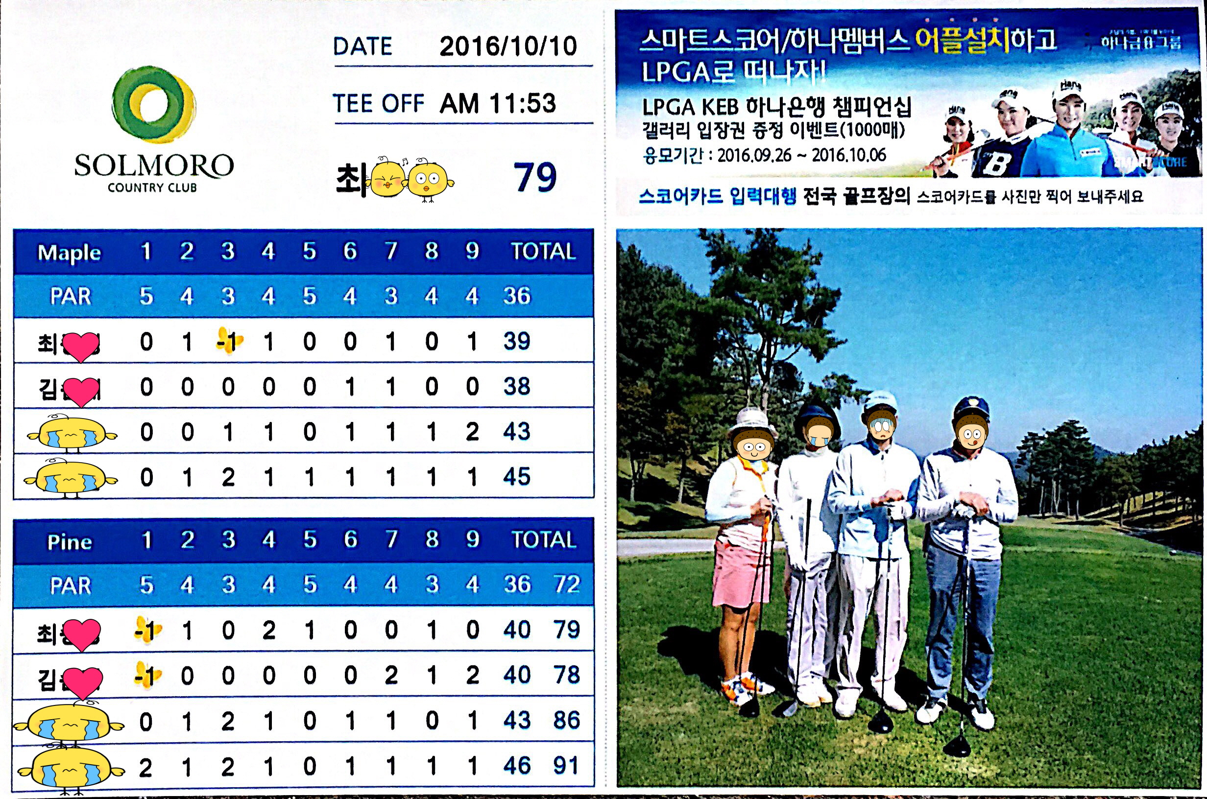 집에 가고 싶다는둥 18홀 내내 투덜대고 떠블 이상하면