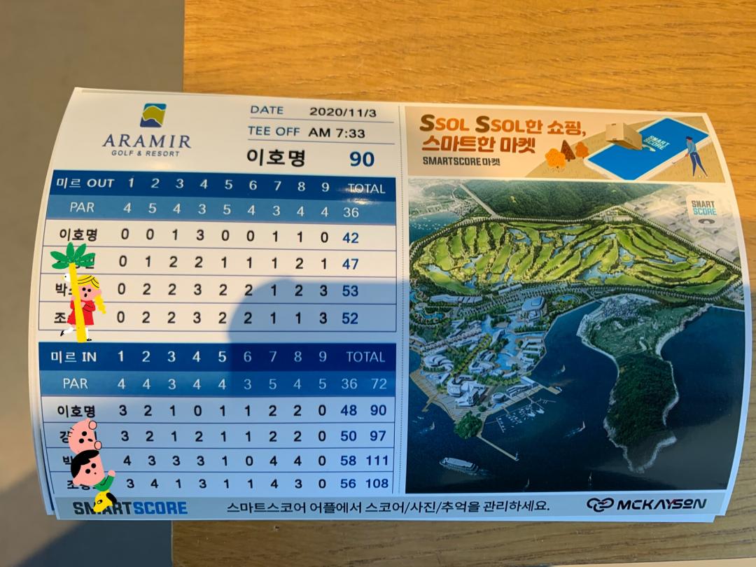 와이프와 와이프 친구도 참 많이 치고.. 여성 두명은 캐디가 스코어 계산을 하기 힘들정도로 많이 쳐서 대충적은 ㅋㅋ