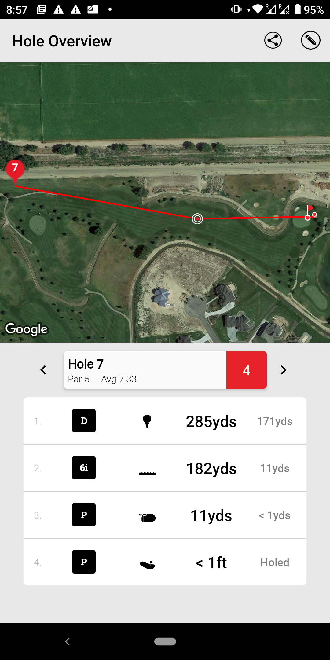 샷스코프라고 손목에 차는 gps 스윙 추적기입니다. 매번 샷할 때마다 그 위치를 자동으로 기록해뒀다가 라운드 끝나고 핸드폰에 동기화시켜주면 이렇게 매 홀마다 어디에서 쳤는지를 지도에 표시해주고 거리도 같이 표시해줍니다. 게시판에서 shot scope v3 검색해보시면 최신 모델 정보가 나올 꺼에요. |