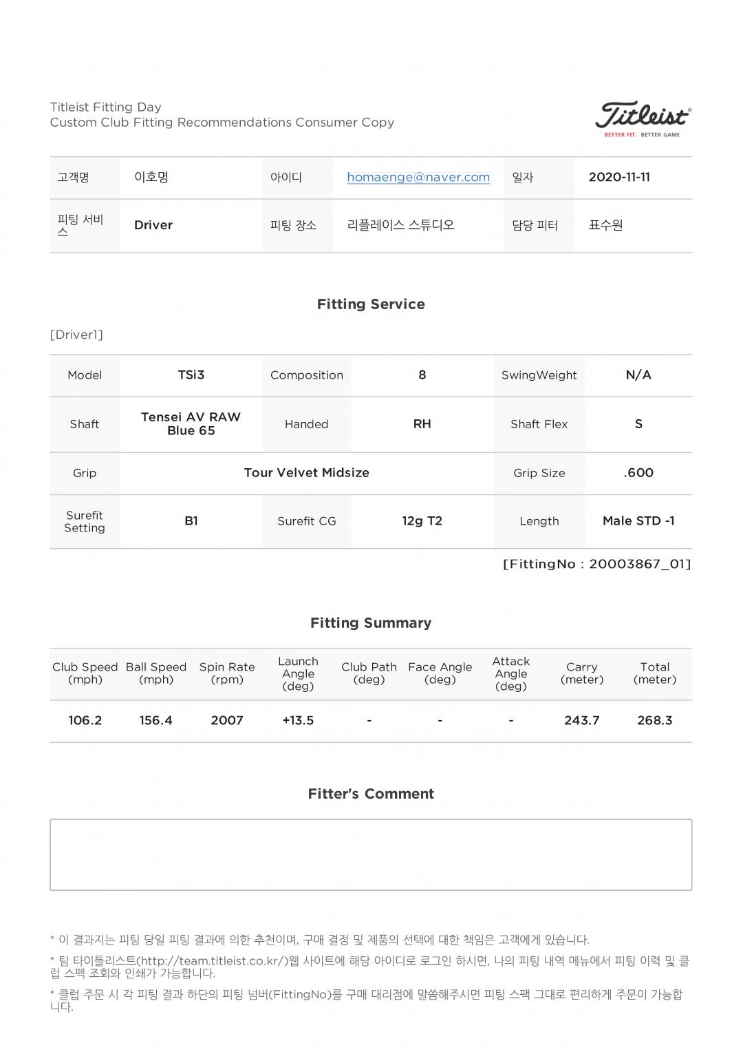 아래는 메일로 온 피팅 데이터 입니다..^^