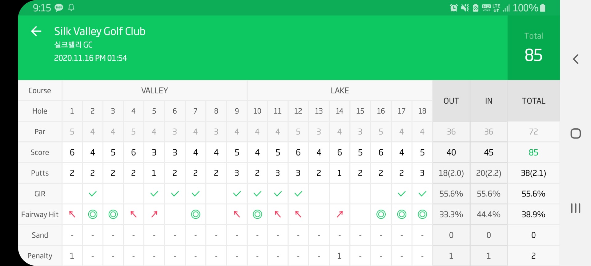 상세히 보니 GIR 도 떨어지고, 그린 주변에서 자잘한 실수가 몇번 나오니 스코어가 확 오르네요.