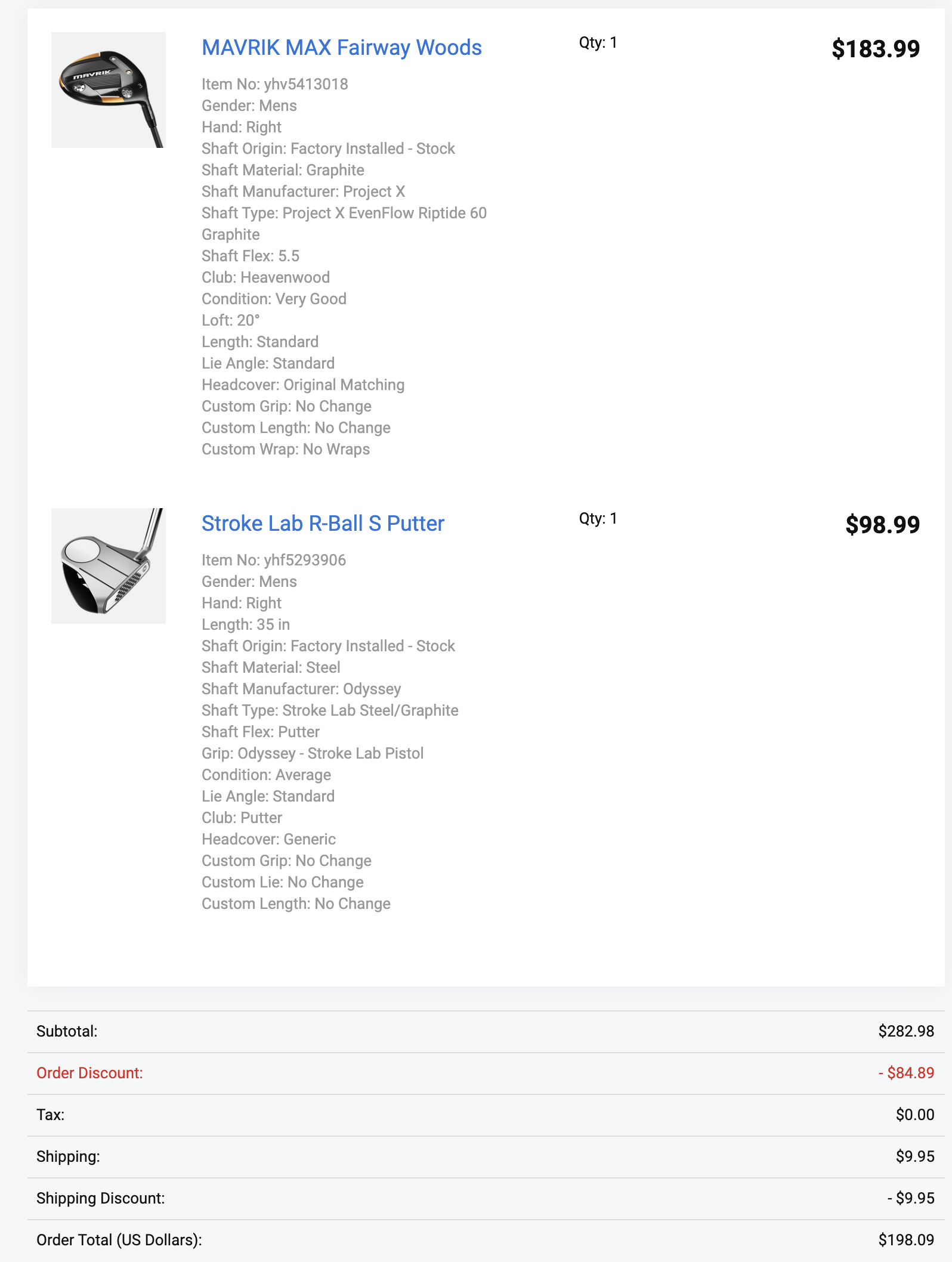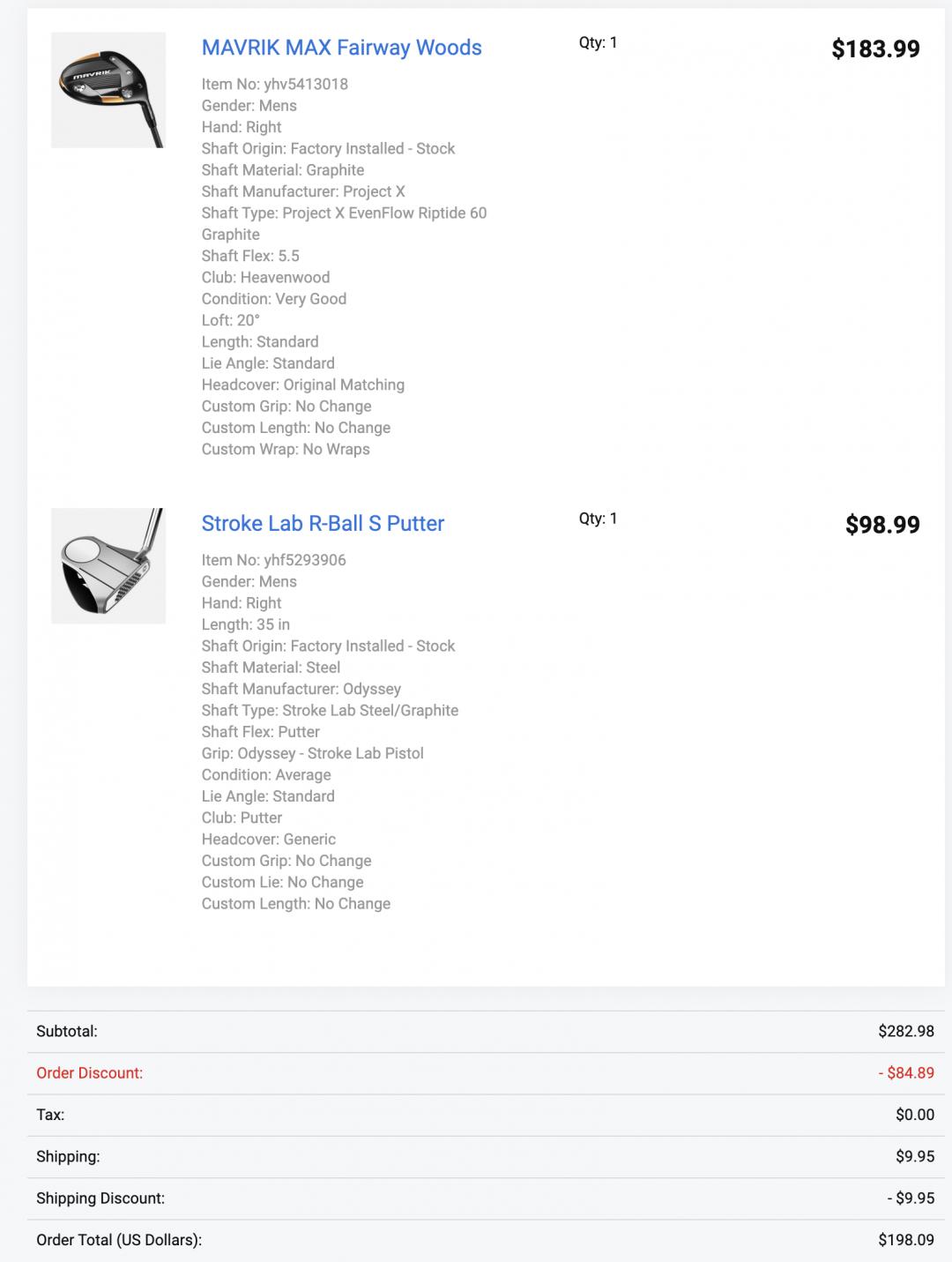골프백을 든든하게 해줄 페어웨이 우드 1개와 200불 언더를 채워줄 스트로크랩 퍼터를 담았습니다.