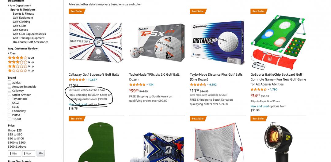아마존이 한국까지 일부 상품은 무료 배송을 하네요.. > 골프포럼