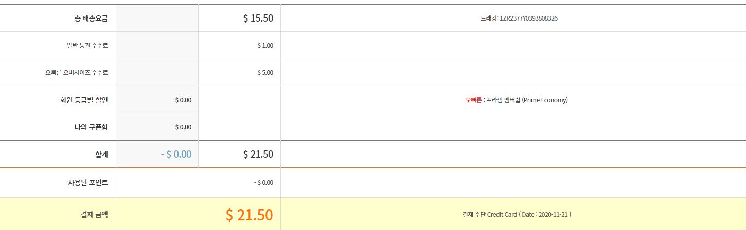결제가 됐는데 두개 다 21.50불 나왔네요...