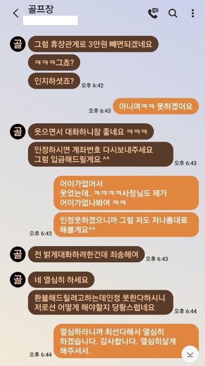 와 사장 새× 요즘 골프연습장 장사좀 되니까 뱃대지가 불럿나봅니다 진짜 아놔 문자만 봐도 빡지네요 저같았으면 진짜 쌍욕 나왔을텐데 진짜 와놔
