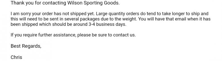 Wilson 공 shipping 관련 답변 공유