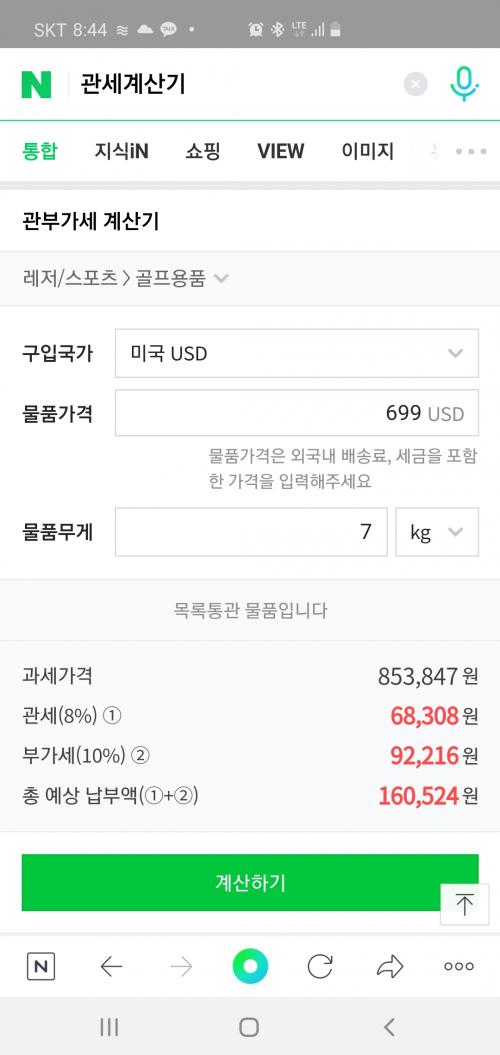 네이버 관세 계산기 맞는건가요? > 골프포럼