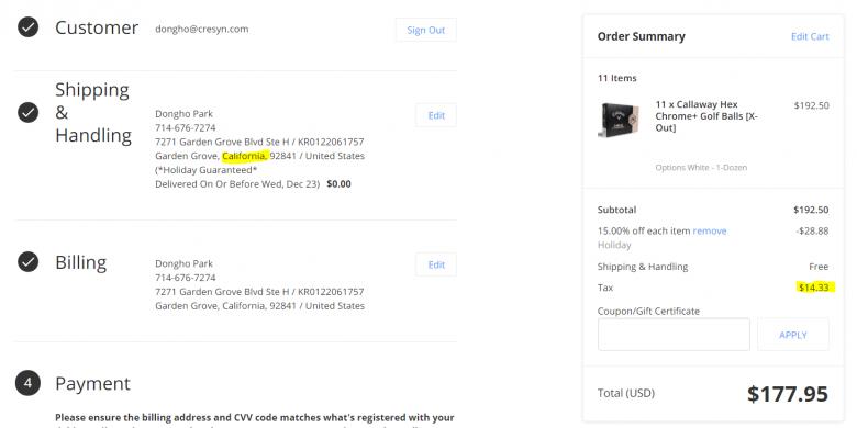 아 그러네요 택스 생각했었는데 주소넣는데 안나오길래 왠열~ 하면서 결제했는데 지금보니 빌링어드레스만 바뀌고 쉬핑은 다른데로 됐네요.. 아오.. 핵직구는 더 비쌀텐데ㅡㅡ;; | ||