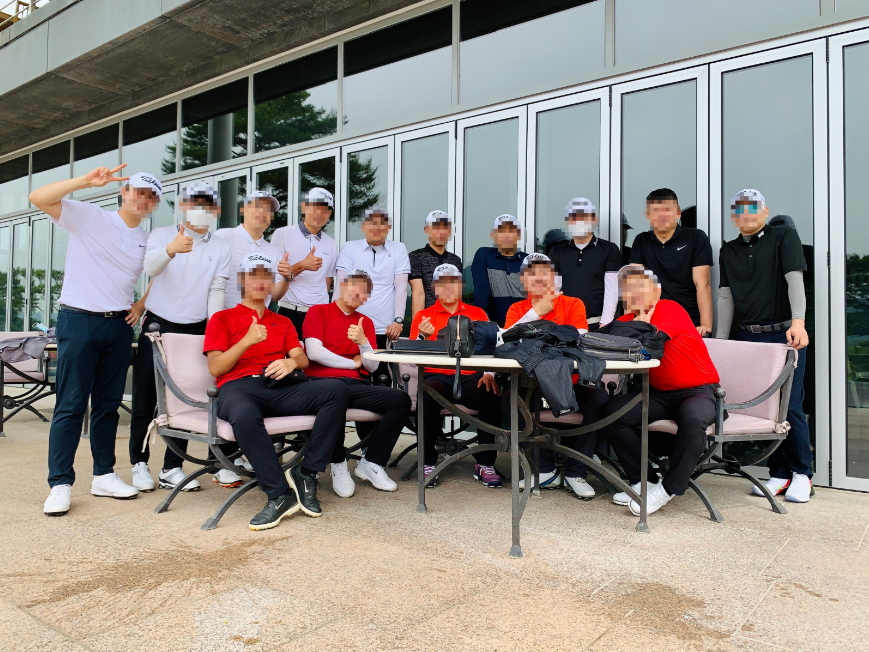 - 해보니까 역시 사진은 라운드 끝나고 찍는게 좋네요. 공치기 전에 사진 찍자그러면 늦게오는 사람부터 시작해서 다 모이기 쉽지 않은데 끝나고 찍으면 미리 얘기만 되어있으면 다 클럽하우스 앞에서 기다리더라구요.