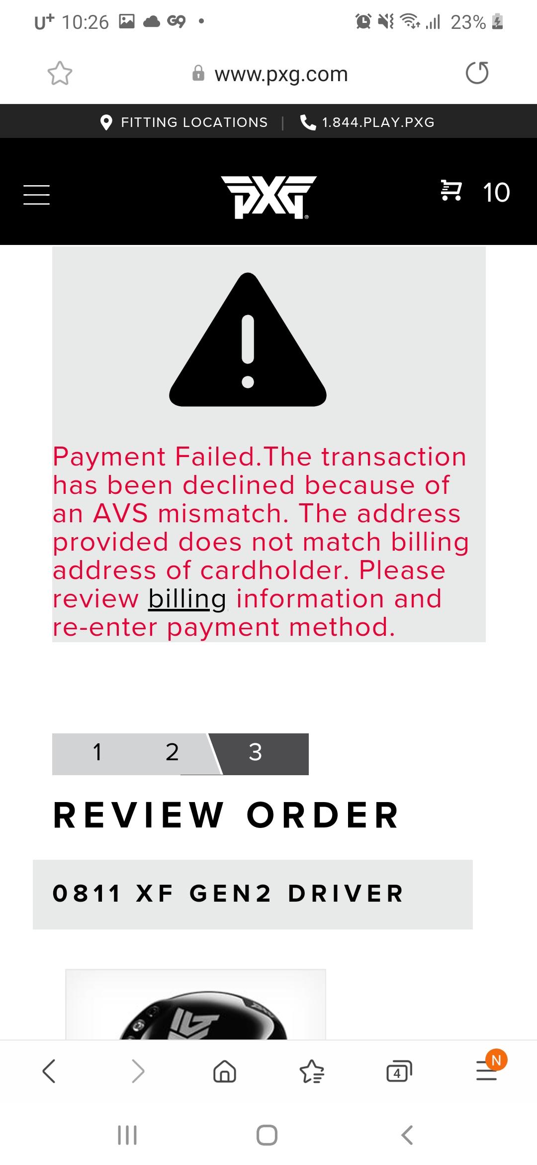 아마도 Billing address 정보가 일치하지 않아서 그러실겁니다.