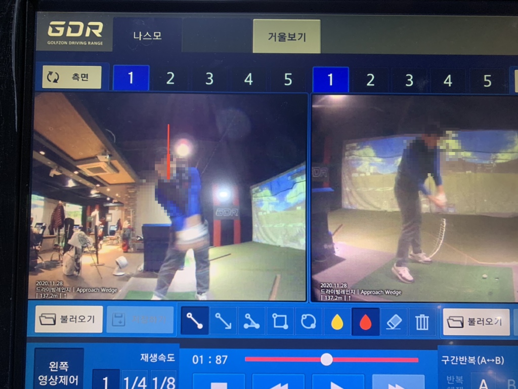 원인이 다운스윙시 오른쪽 ㅇㅓ깨가 쳐져서 머리가 쳐지는지 머리가 뒤로 밀려서 어깨가 쳐지는지~~