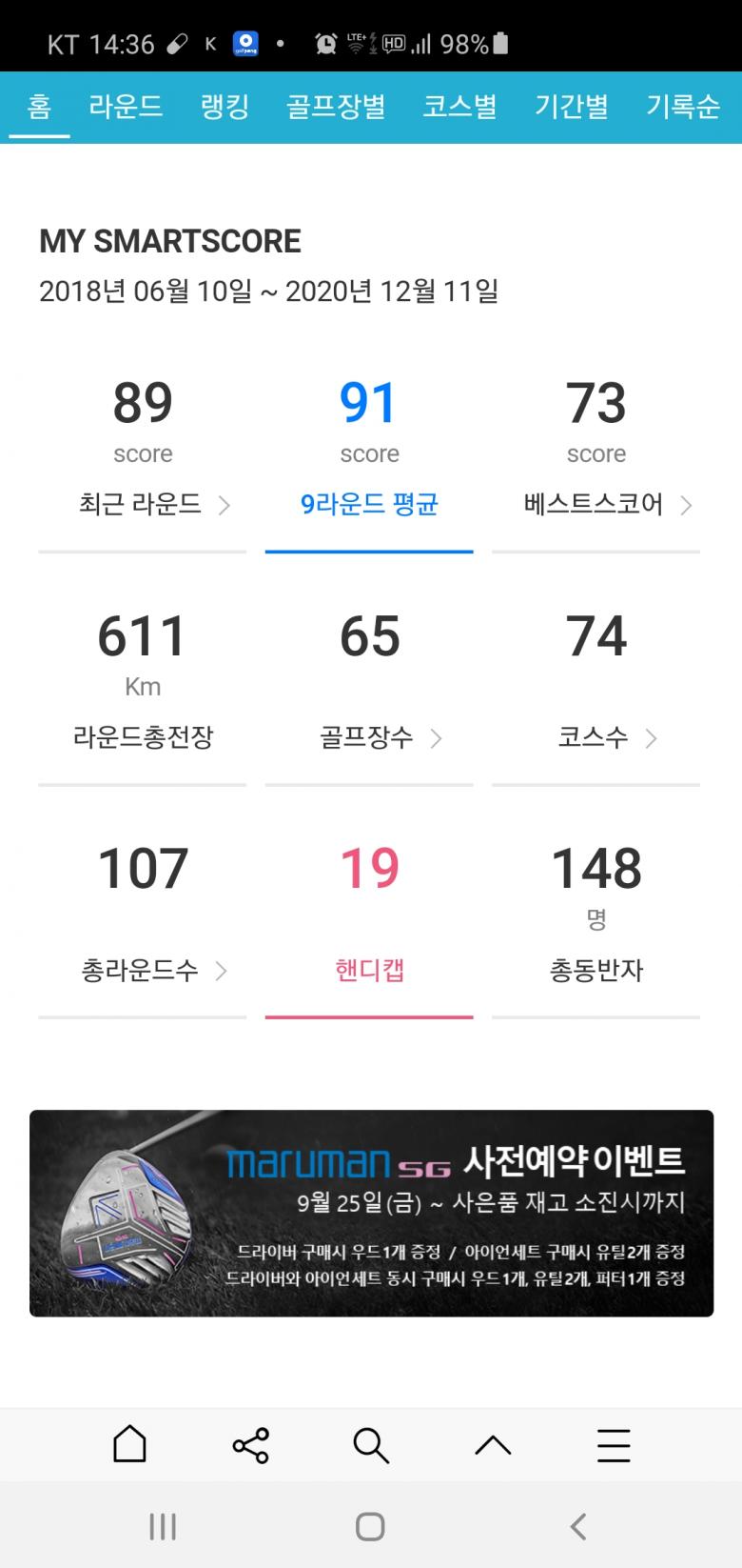 골프존 로그인하니까 올해는 7월에 한게임쳤네요.