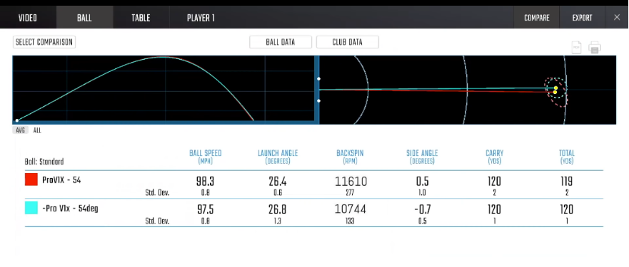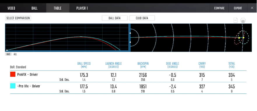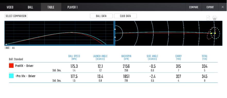 드라이버 탄도가 더 올라가고, 백스핀이 무려 14% 이상 줄어들고 거리는 10미터 정도 더 나갔습니다.
