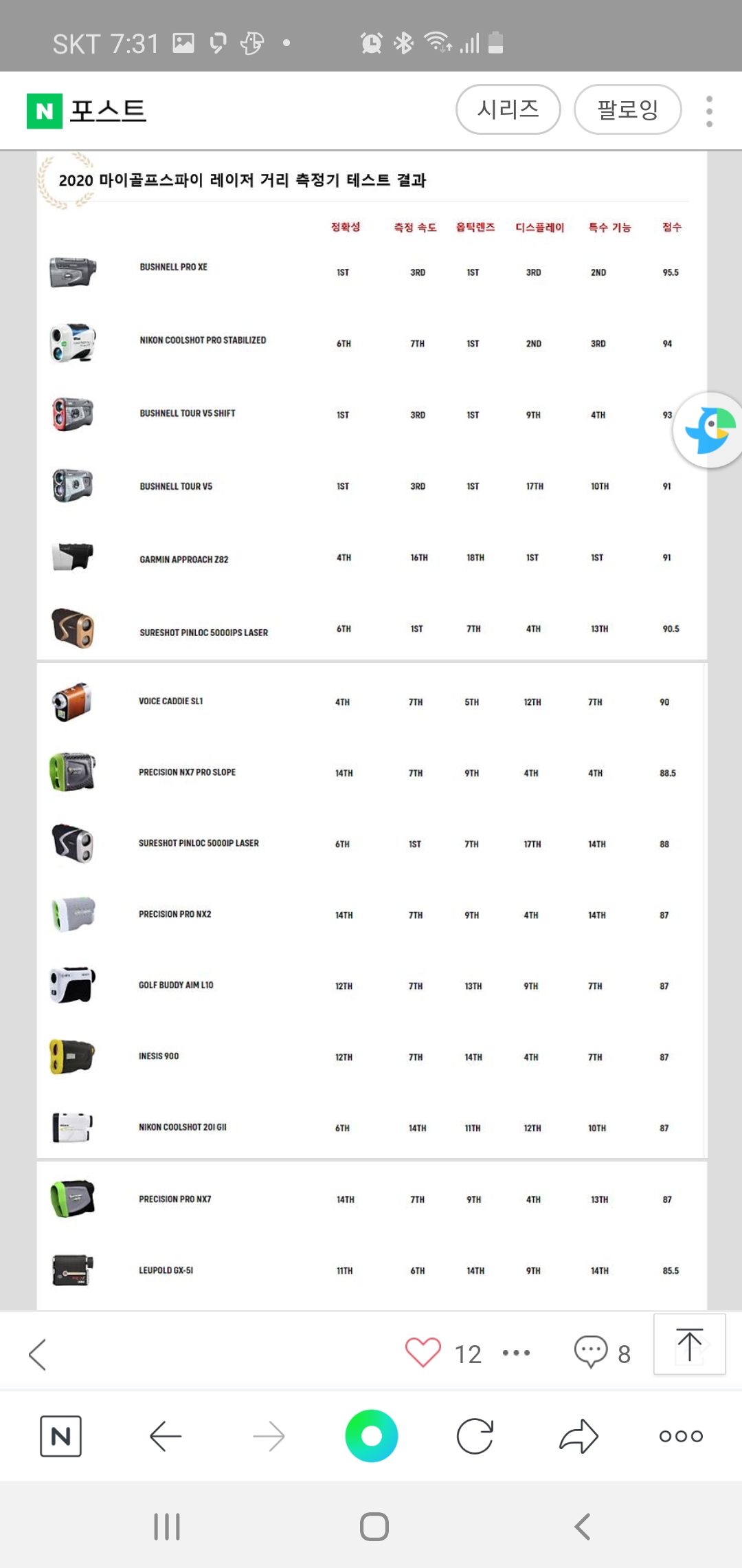 전체 순위에서도 6등이고....정확도도 부쉬넬 가민을 빼면
