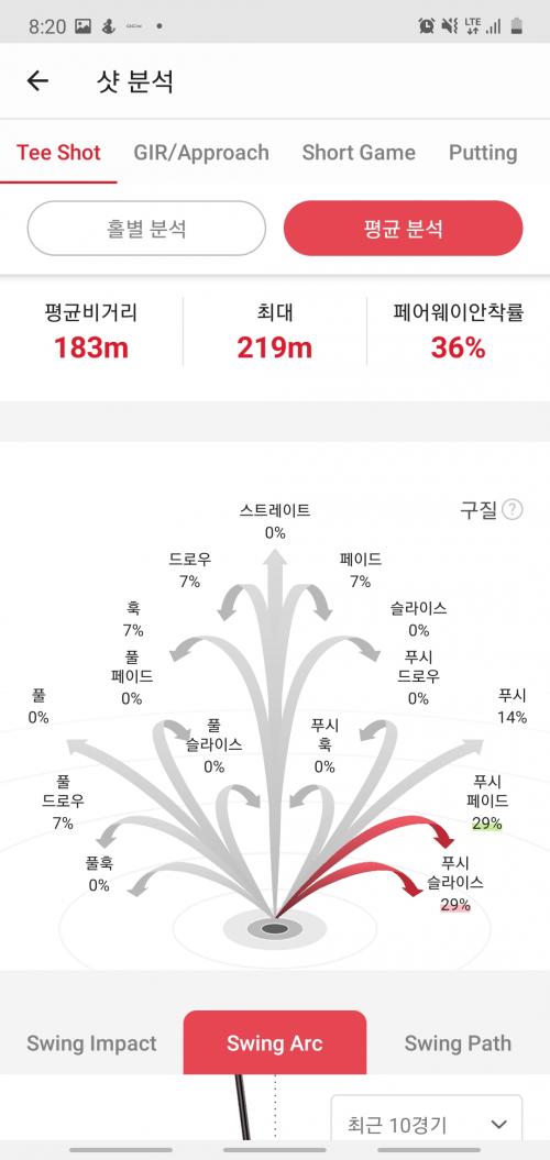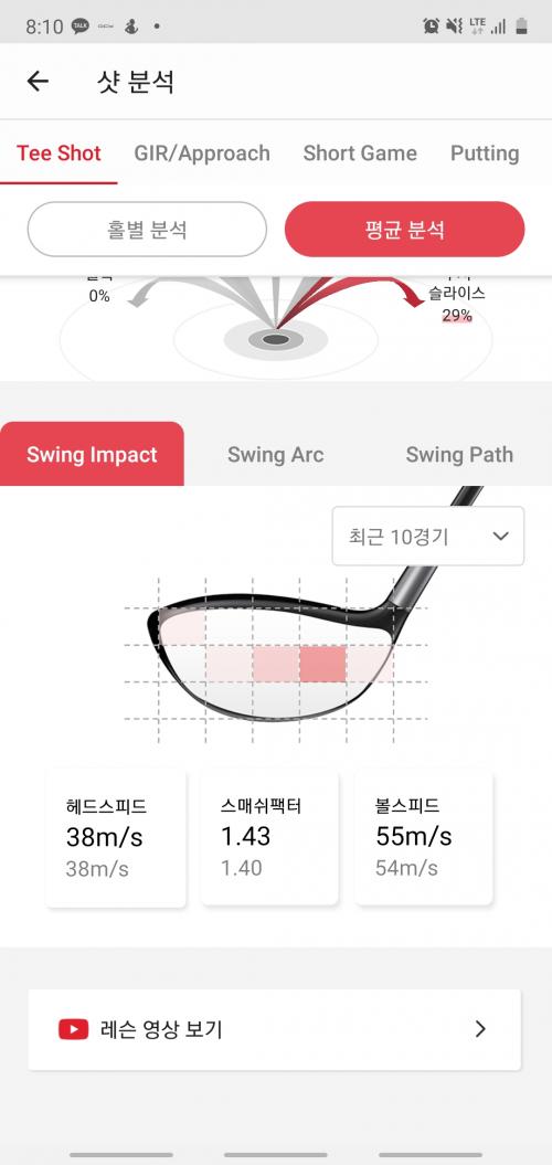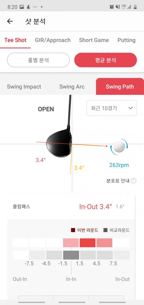 스윙패스는 인아웃 3.4도인데 푸쉬슬라이스가 난다는 것은 페이스가 열려맞는 상태입니다.