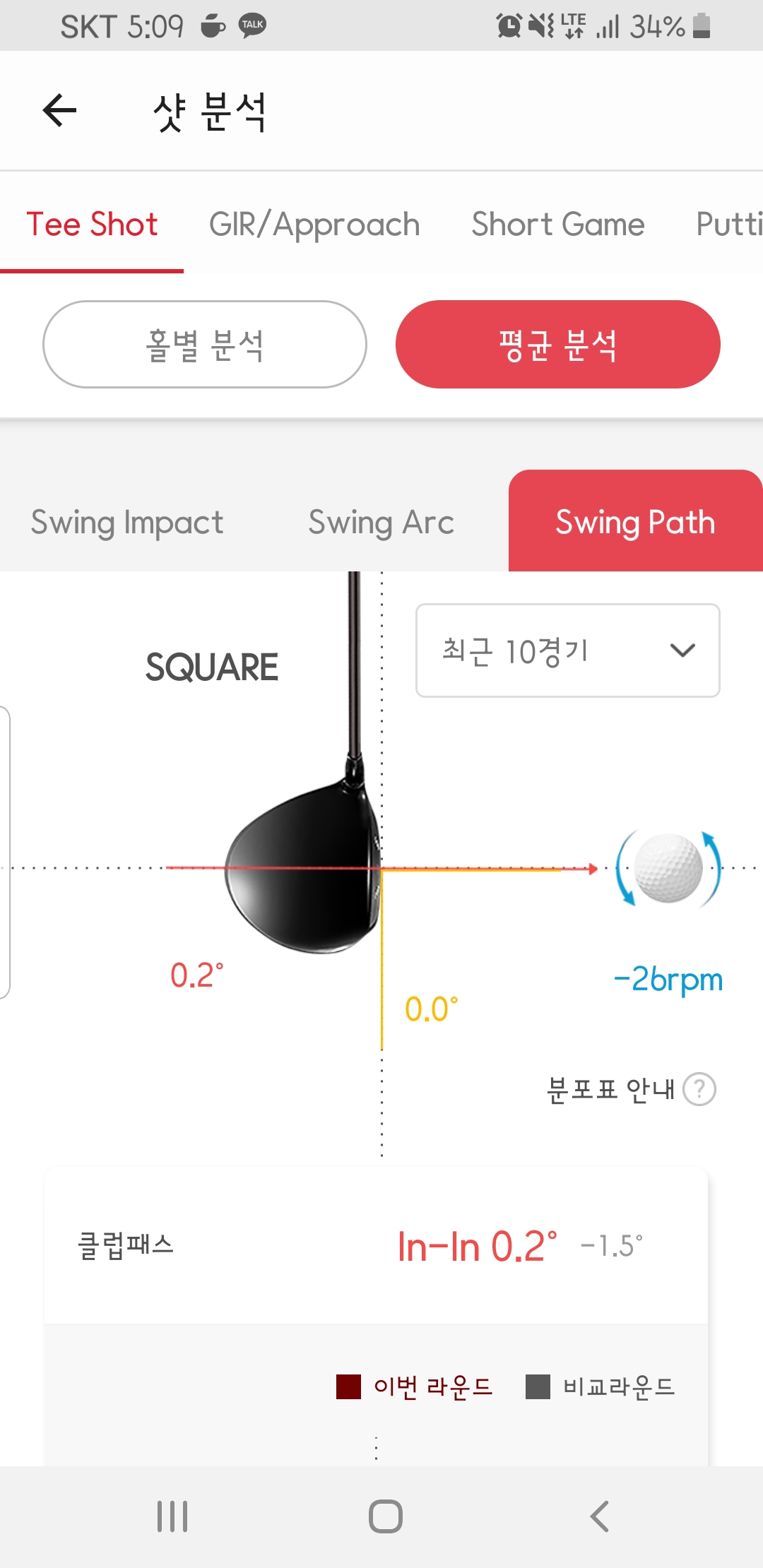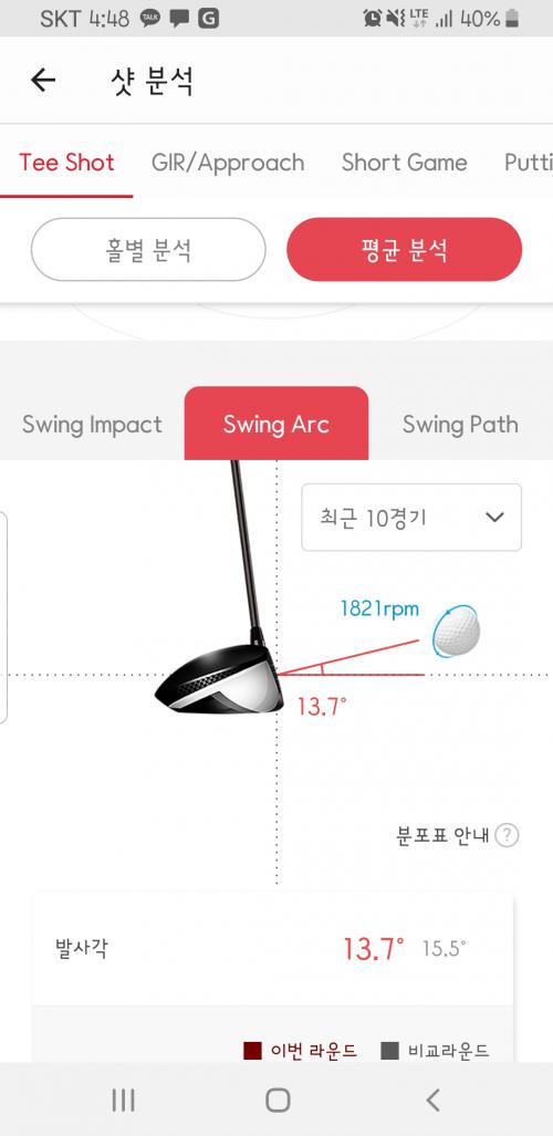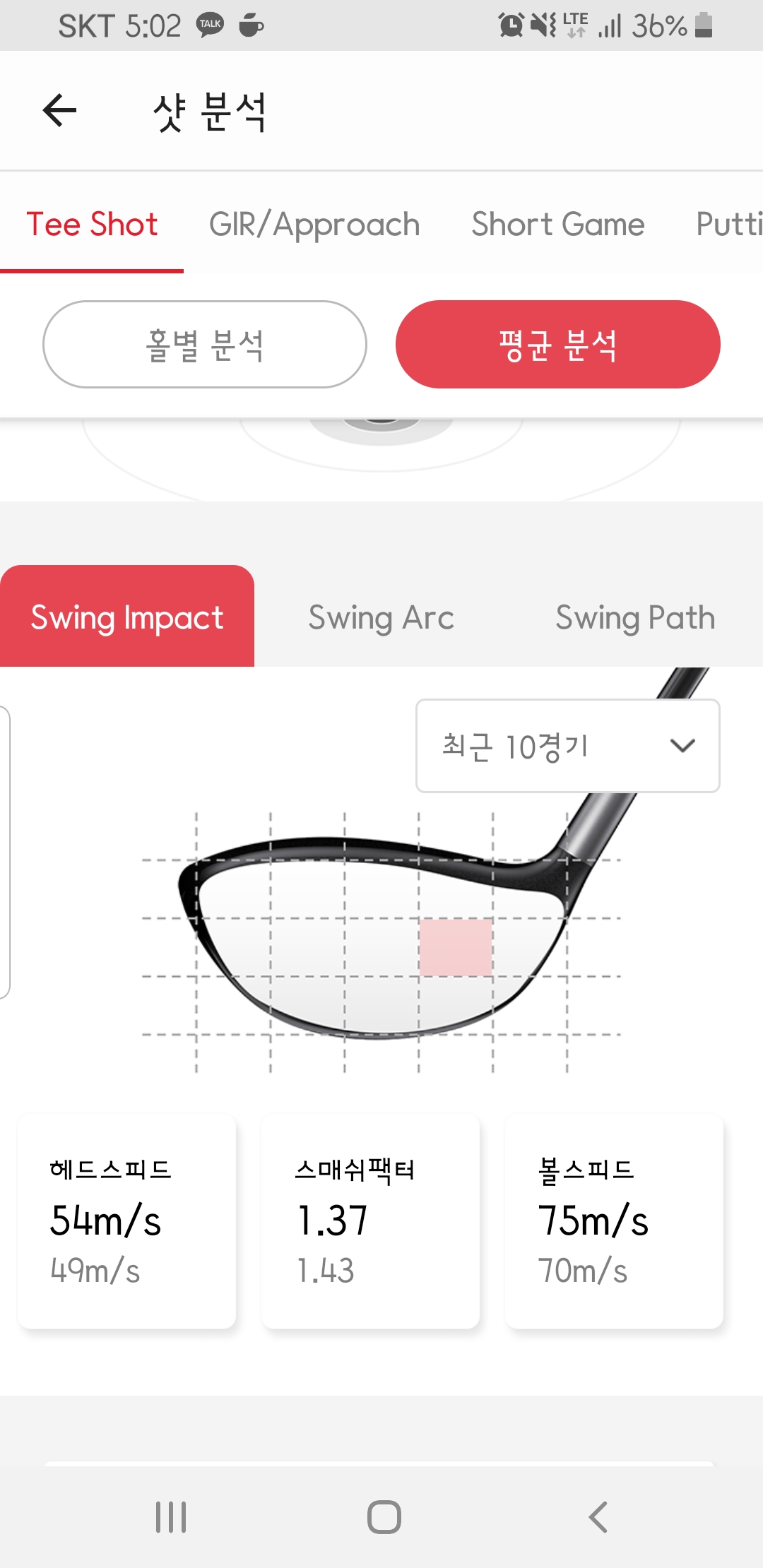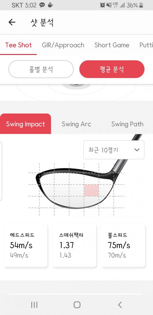 골프대디로 10게임 평균 볼스피드. 발사각. 백스핀. 스윙궤도 관련 정보 추가 첨부합니다.