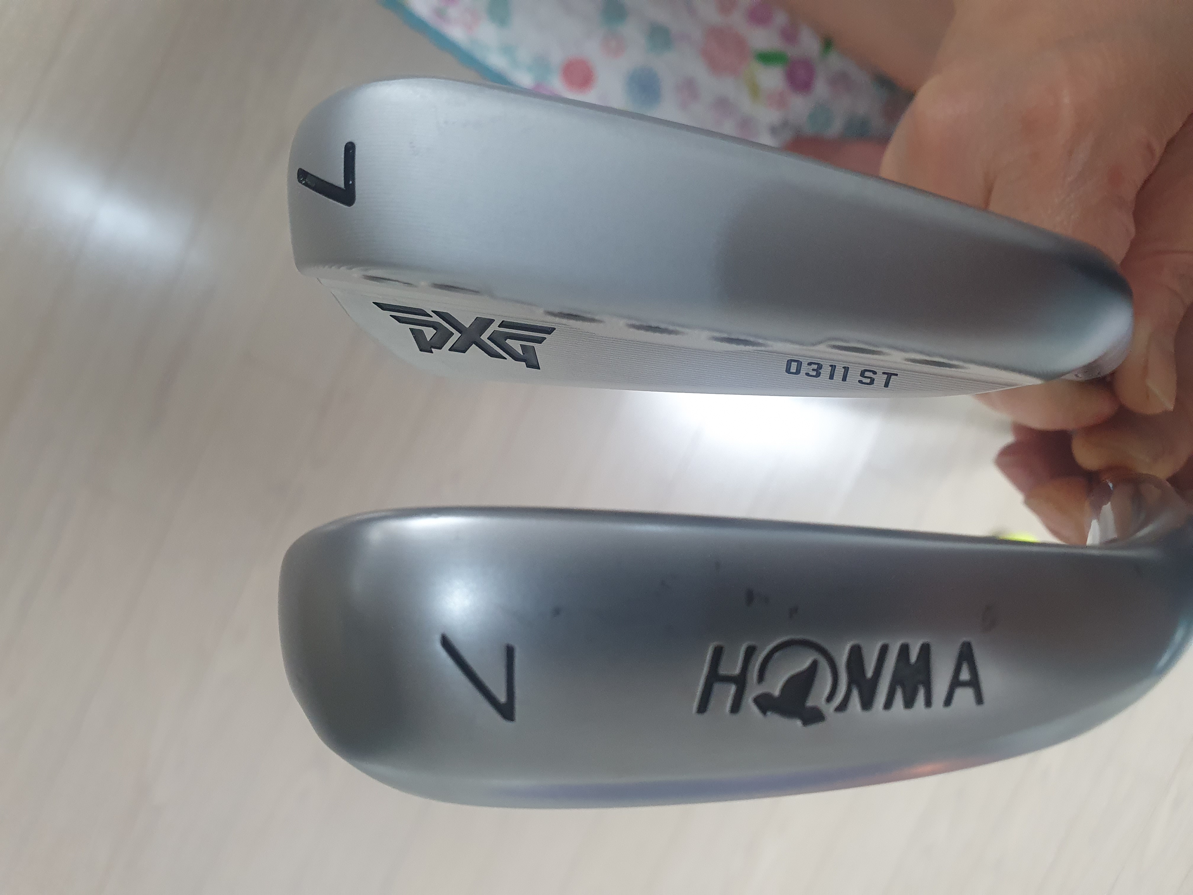 클럽 페이스는 길이가 0.5미리 정도 PXG가 작아 보입니다. 높이도 그정도 작아 보이고요.
