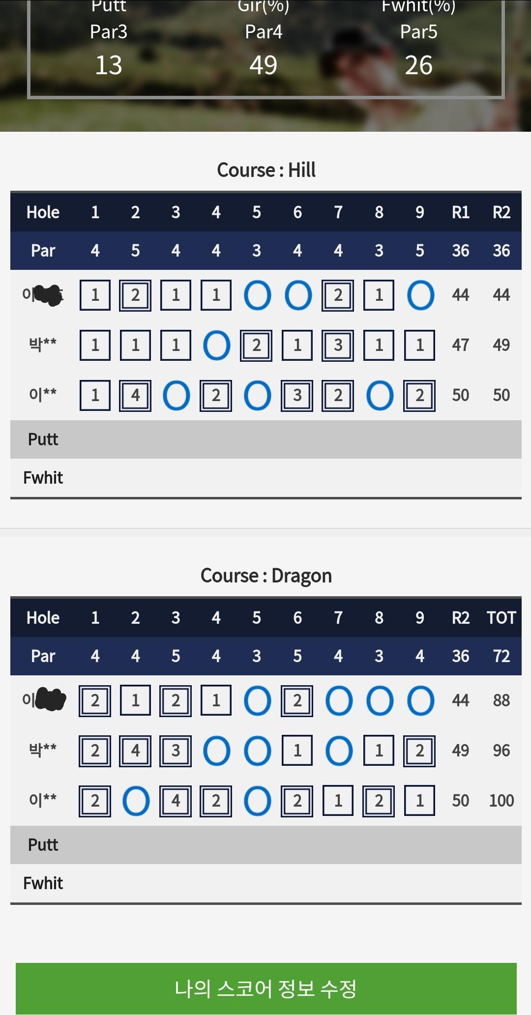 라운드종료전까지 그린이 녹지않아서 애먹었지만,