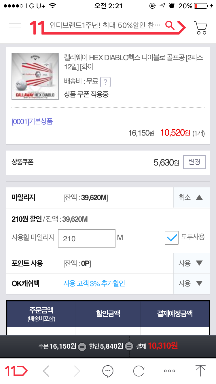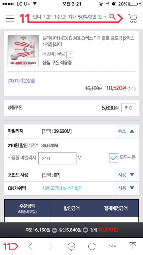 1. 캘러웨이 헥스 디아블로 12알 - 10,520원, 등급따라 추가 마일리지 할인. 무료배송