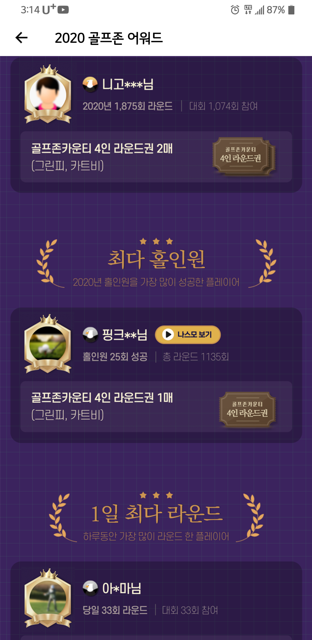 1년 최다 라운드랑 하루 최다 라운드 정말ㅎㄷㄷ합니다ㅎㅎ