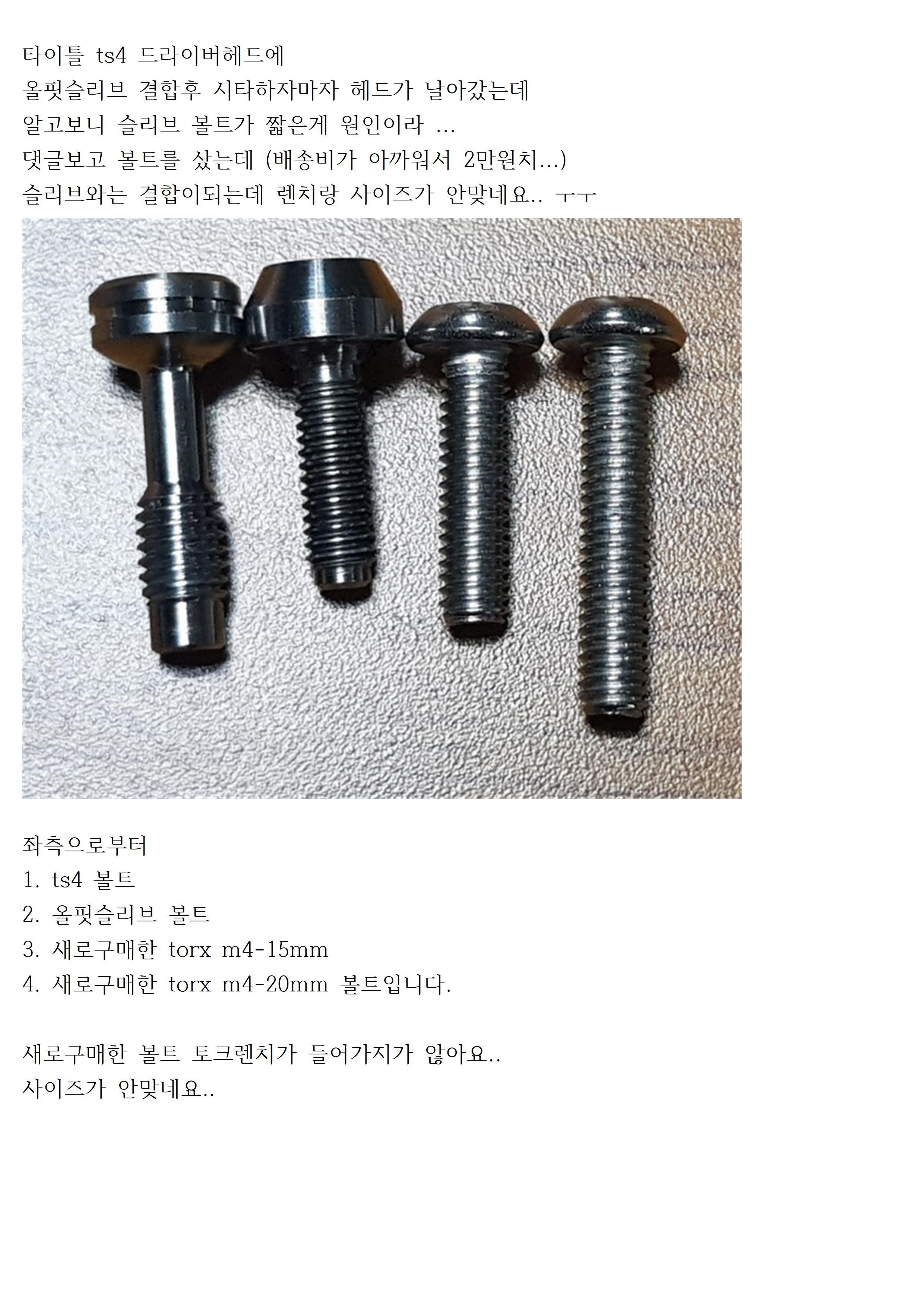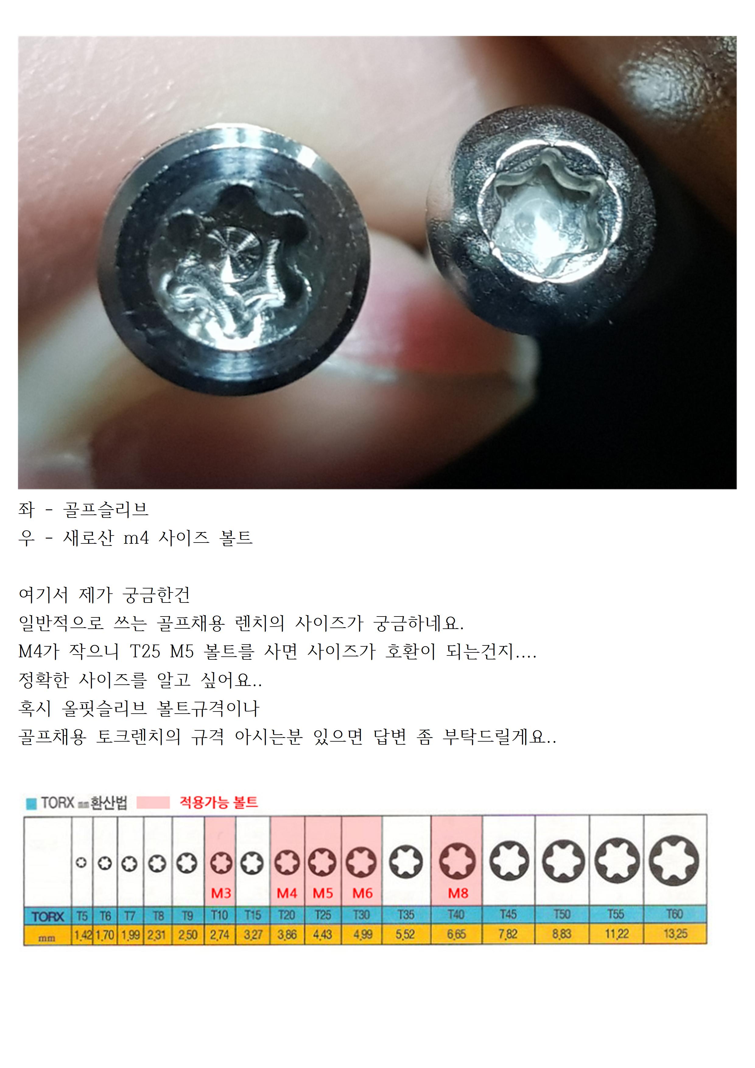 저도 올핏슬리브 사용중인데요 프로토 이후 신형 PXG는 올핏 나사가 짧아 헤드 결합이 안되네요 혹시 M5 사이즈 볼트는 렌치에 맞나요? 감사합니다