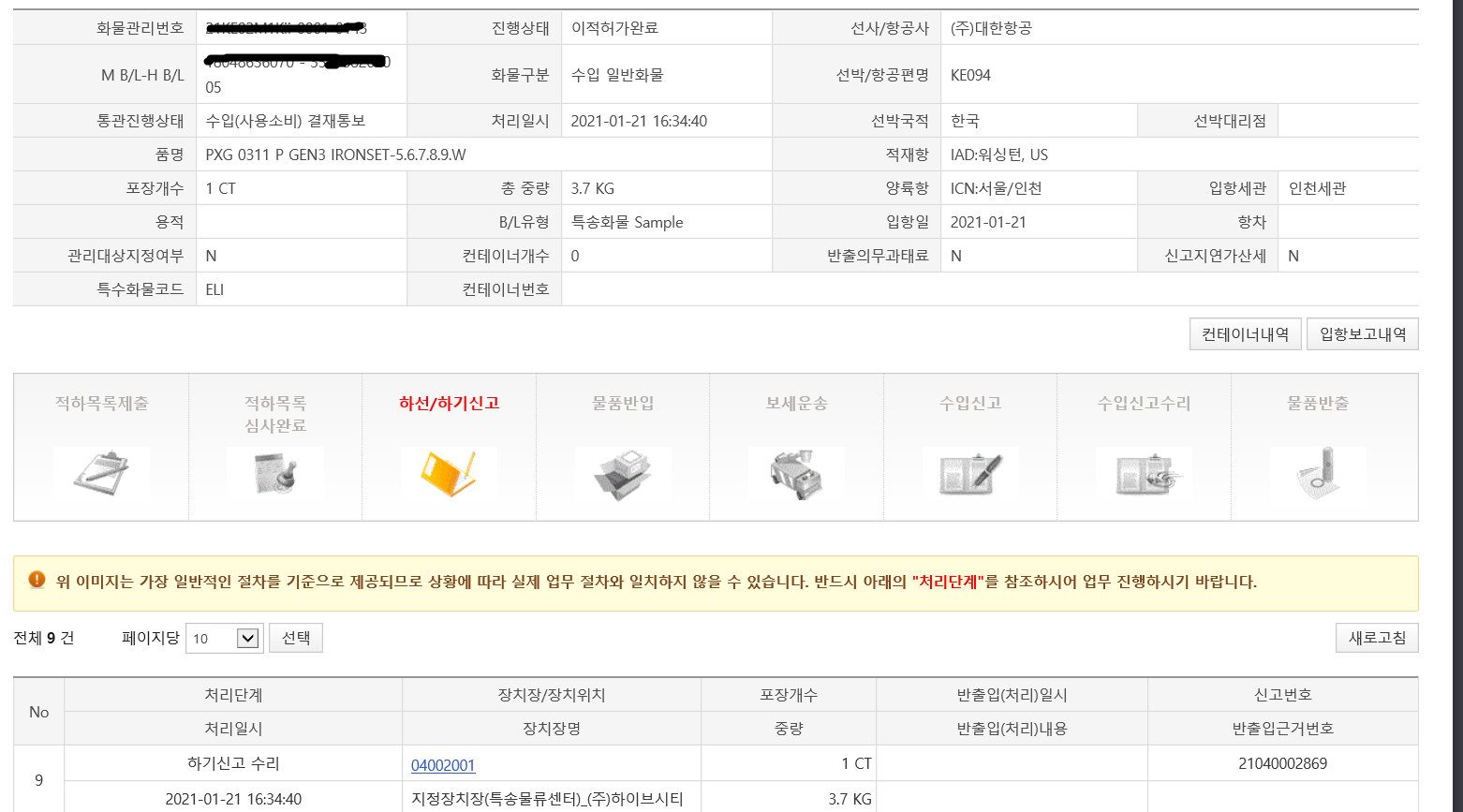 통관 진행중... 언제 수령 가능할까요???ㅎ