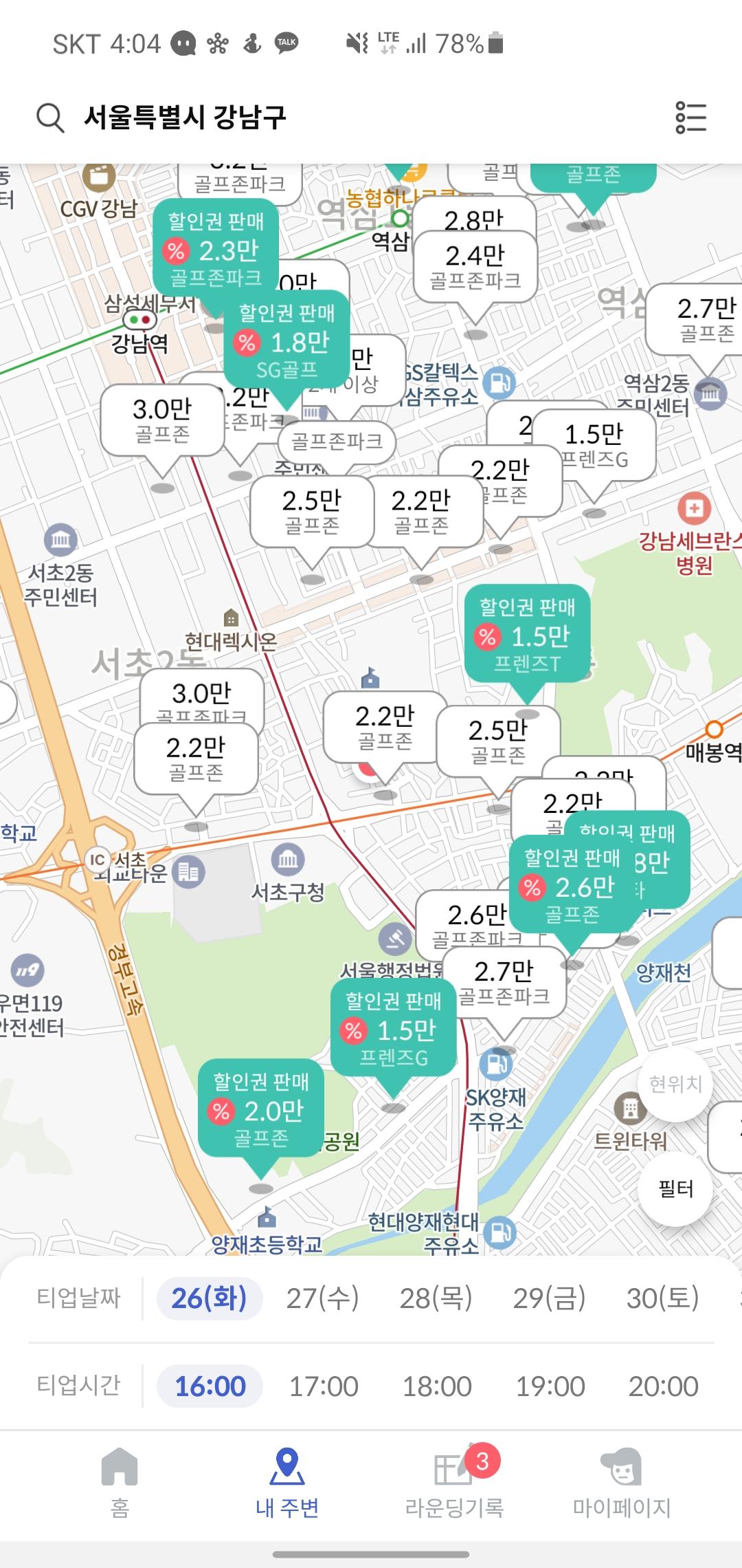 김캐디는 내주변 매장 가격/시설 비교하고 간편예약할 수 있는 어플이에요!