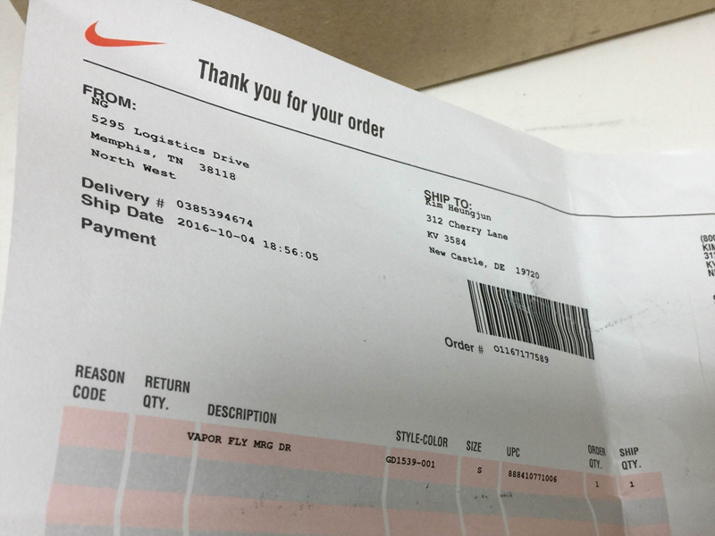 분명 주문은 NIKE US 사이트에서 했는데 도착한 물건은 한국 유통 정품이??