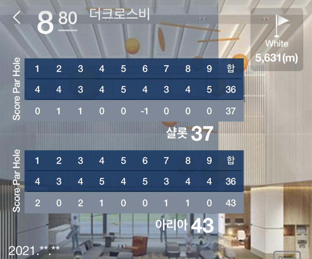 설 연휴 때 친구들과 더크로스비 나가서 전반 1오버 / 후반 7오버로 딱 80개 쳤네요. 전반 끝나고 기분 좋아서 막걸리를 많이 마신게 후반에 화가 되었다는..ㅋㅋ