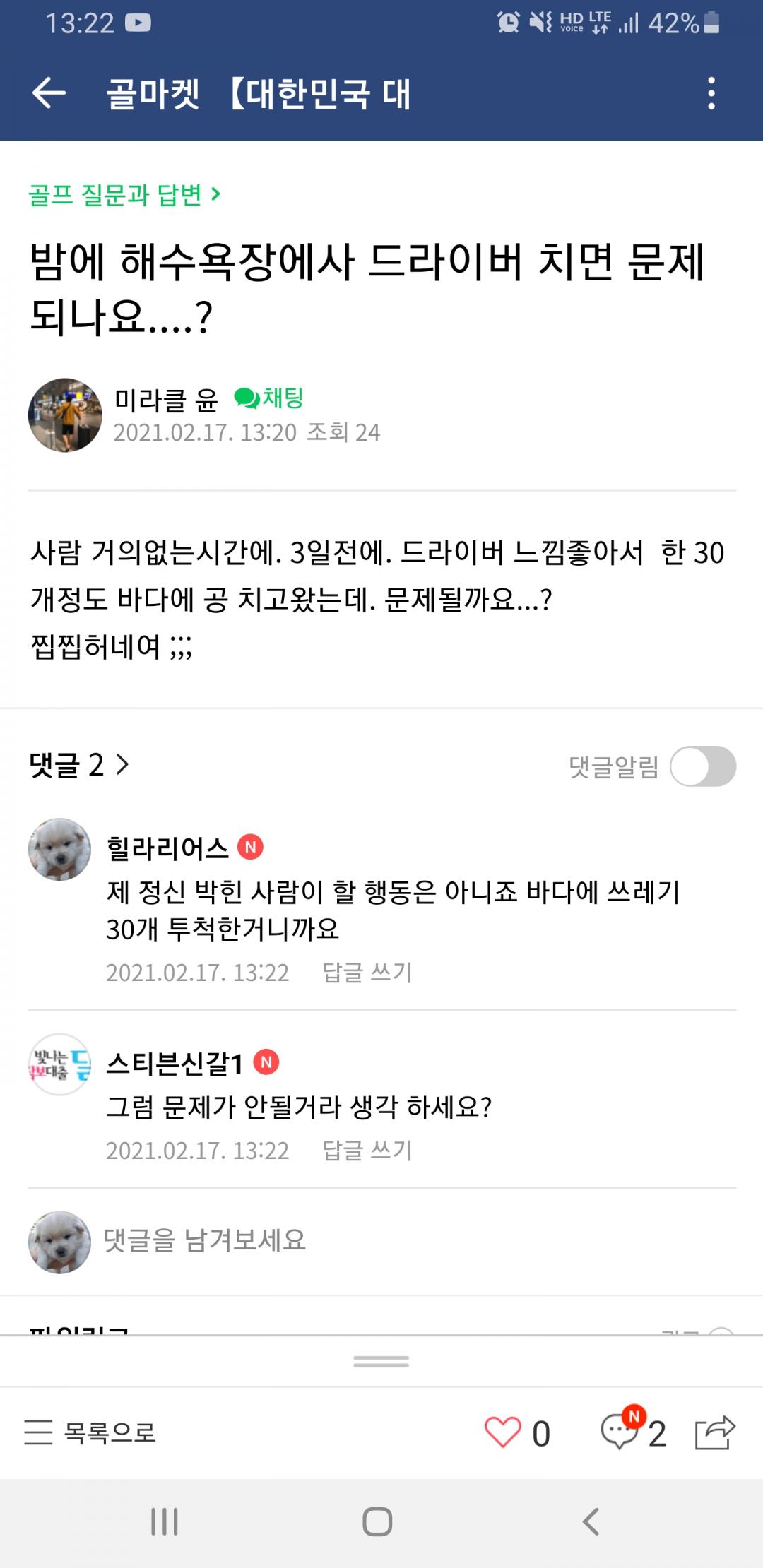 10넌 전 낚시 하는데 차에서 두명이 사과박스 두개를 꺼내더니 거기서 볼 꺼내 바다로 드라이버 치더군요. 바로 파출소 전화 했죠.