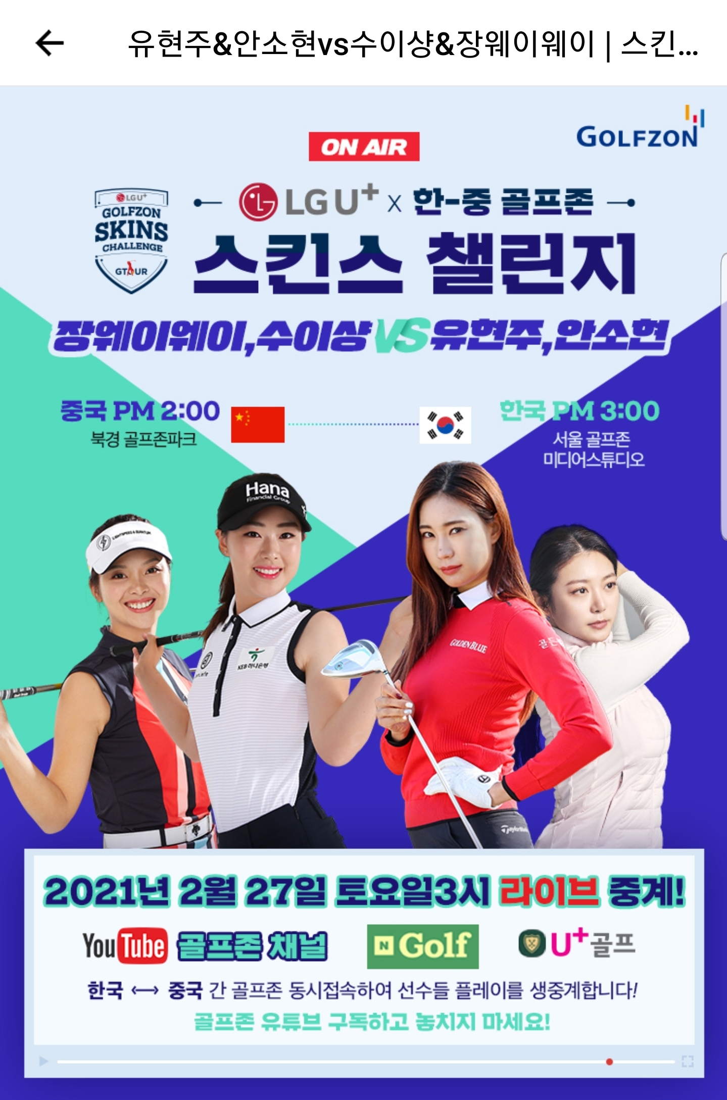 골프존 연결해서 스크린 게임치던 생중계보다 시청률 높을듯.....전 일단 본방사수.