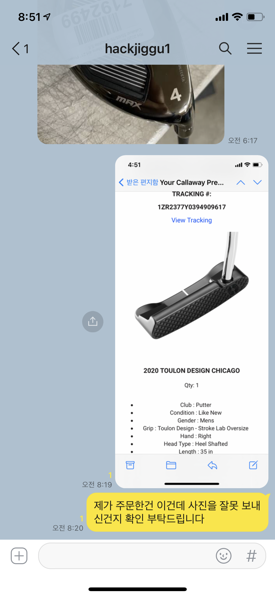 저는 퍼터를 시켰는데 유틸 사진을 보내주네요.