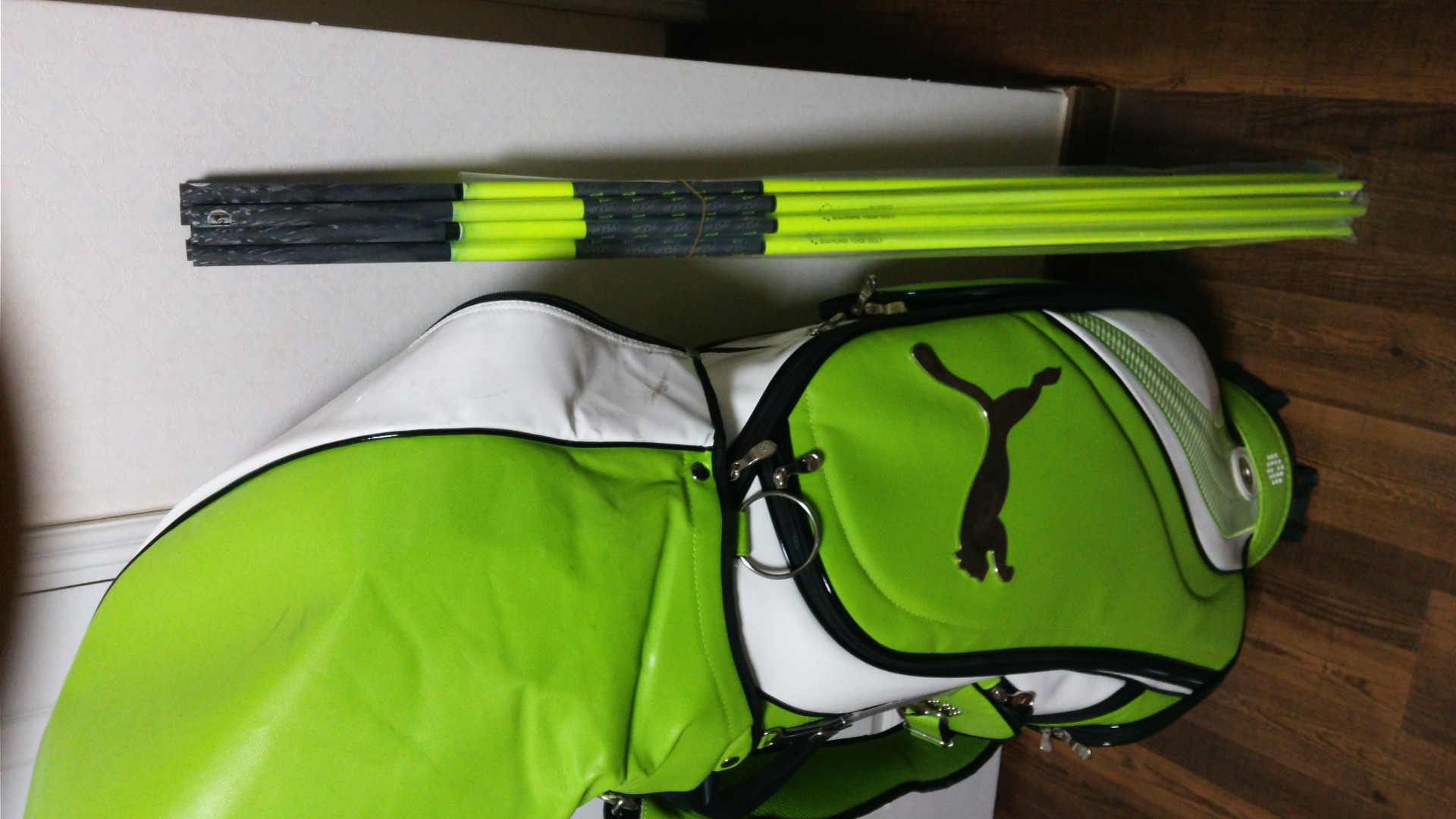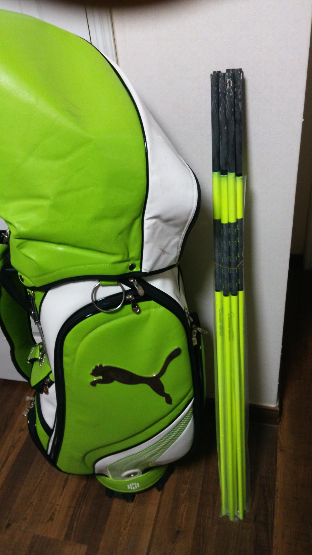 연두색 골프백에 형광색 아이언 샤프트가 잘 어울려야 할텐데~