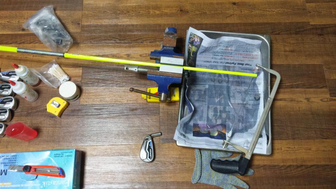 지난번에 경량스틸로 조립했던 아이언도 다시 그라파이트로 리샤프팅하고 그립 장착하고,...