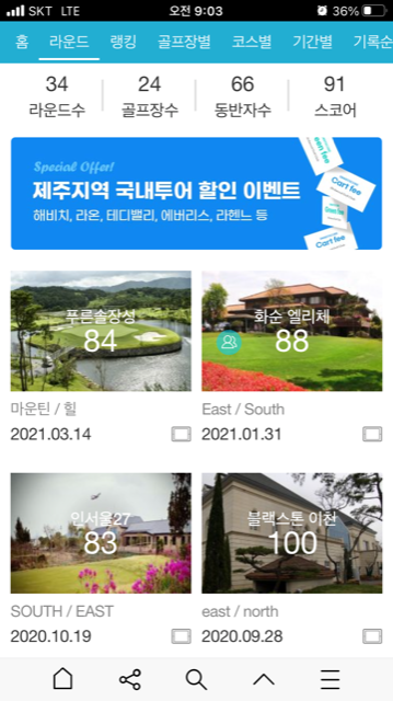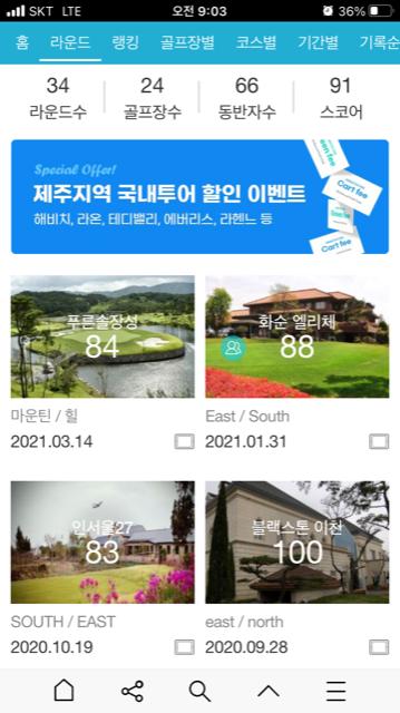 작년에는 어깨 부상, 훅 덕분에 스코어가 널을 뛰었는데 상반기 안정적 80 초반으로 가봐야지요.