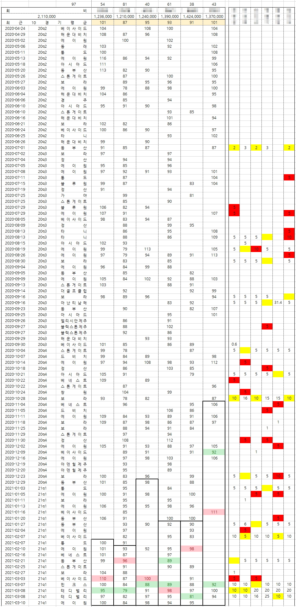 - 검은테두리 = 최근 10경기