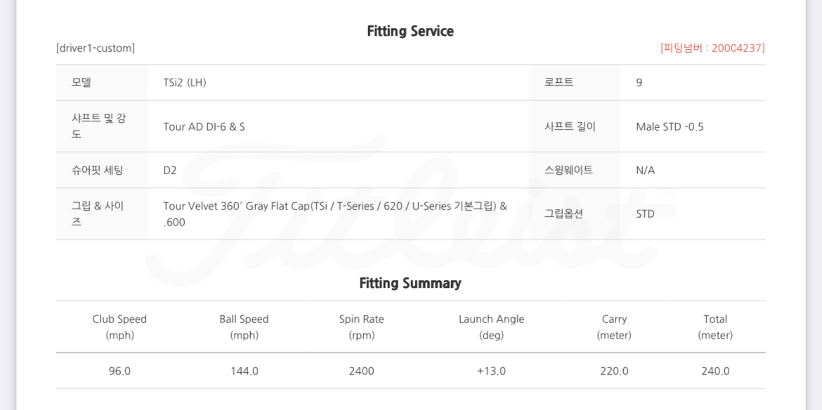 작년 11월 피팅결과고 지금의 스윙도 크게 변함은